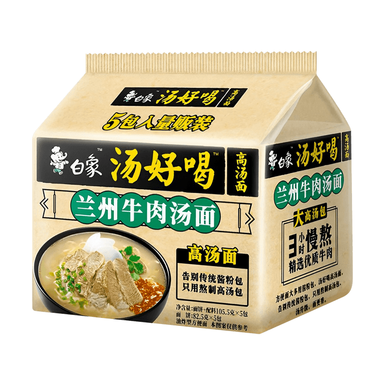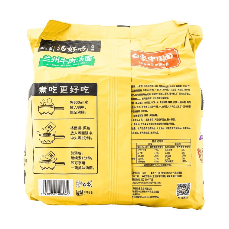 [Light of Domestic Products] Baixiang Instant Noodles with delicious soup, Lanzhou Beef Noodle Soup, 5 packs 537.5g