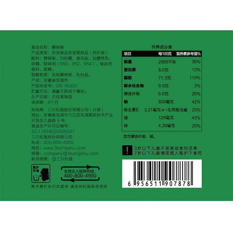 China Three Squirrels Pecan Snacks, Nuts and Longevity Dried Fruits 120g/bag